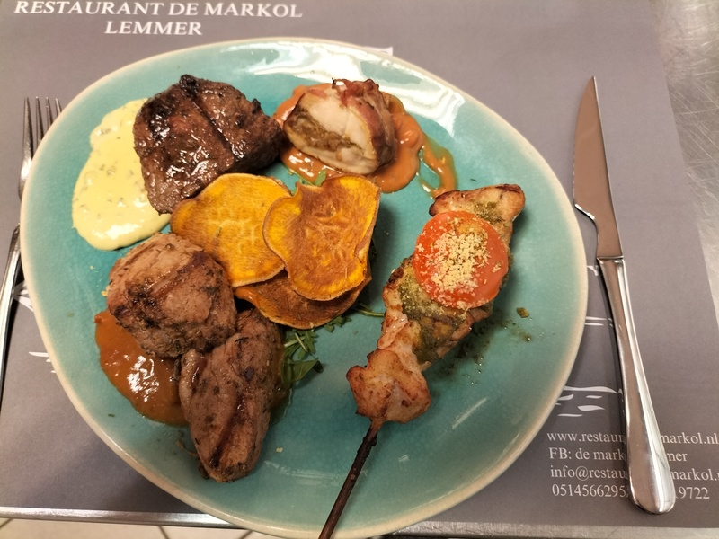 Hoofdgerechten zijn met een aardappel gerecht, rauwkost en warme groente.